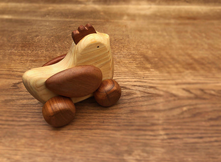 木の種類:さくら(羽、車輪、とさか)・ヒノキ(胴体)